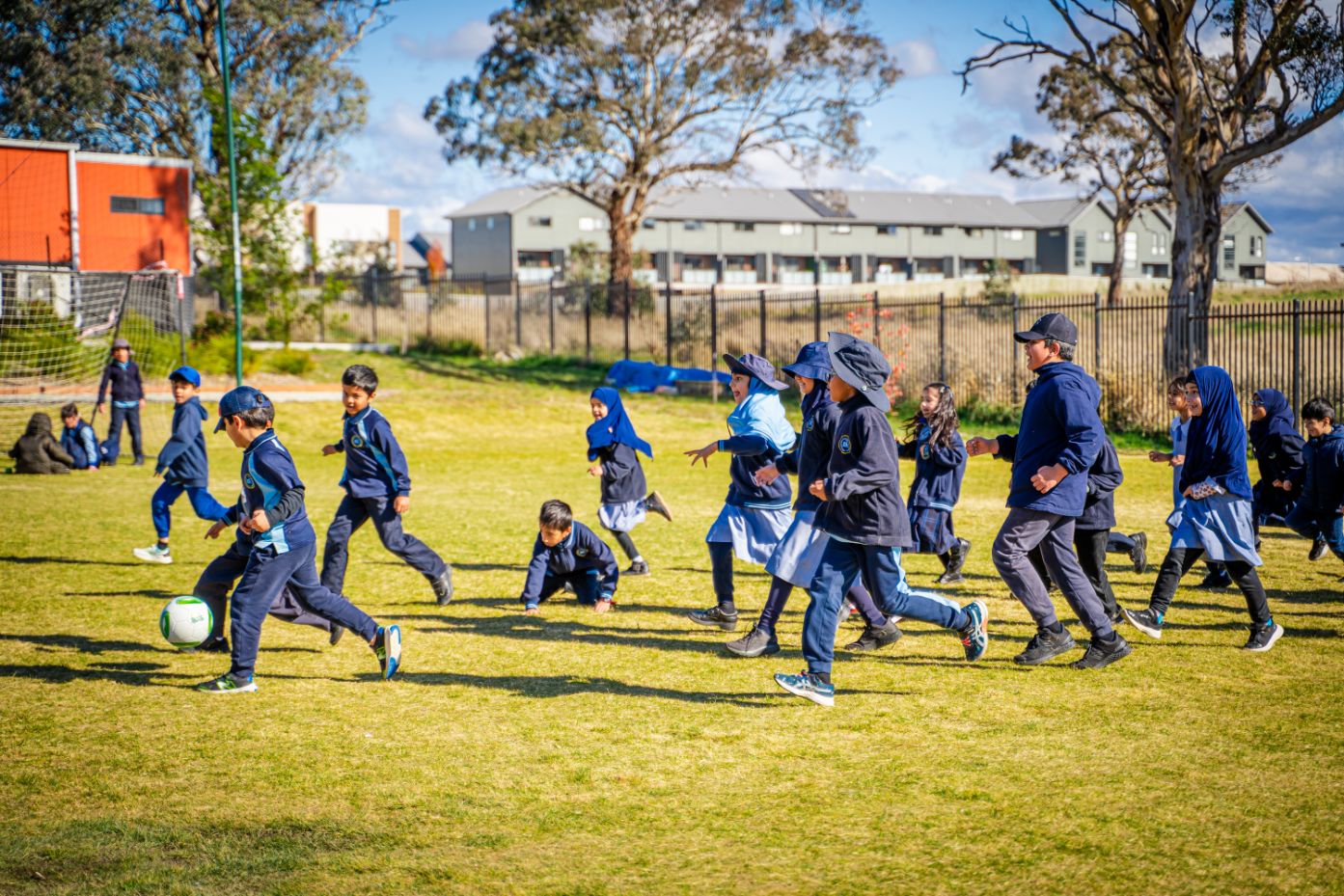 Playing soccer