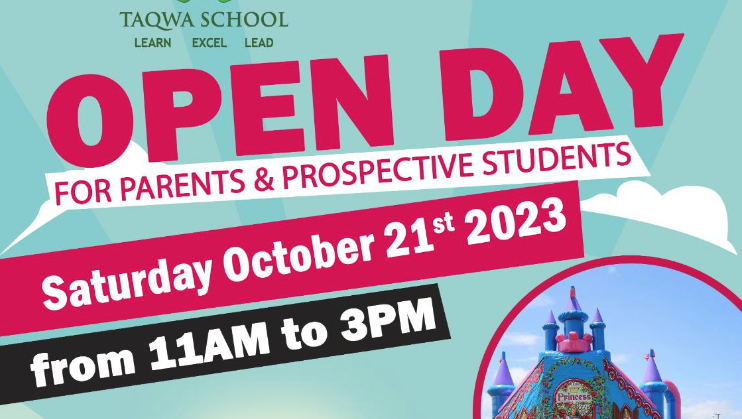 Taqwa School is again holding its Open Day for all students, past students, parents and carers. Please join us on Saturday the 21st of October from 11AM to 3PM.